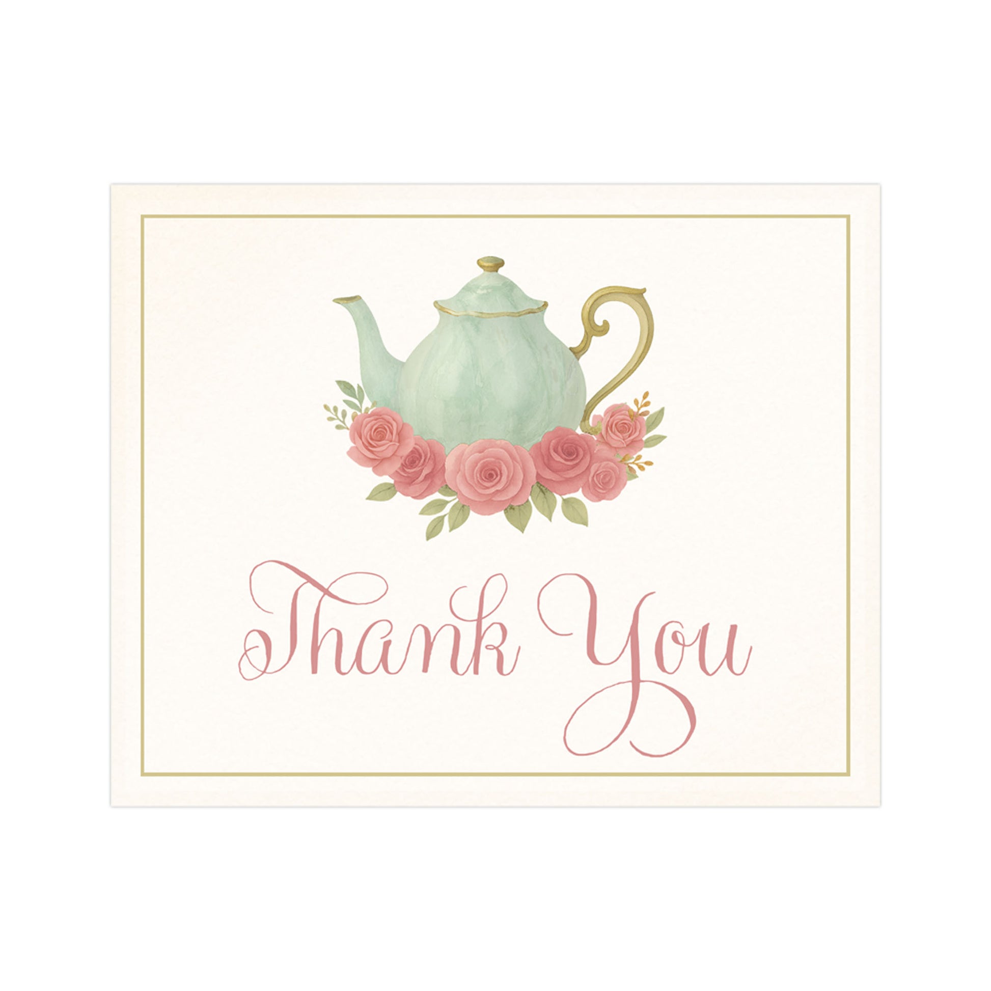 Thank guests for attending your bridal tea shower with this thank you card featuring tea cups and flowers.