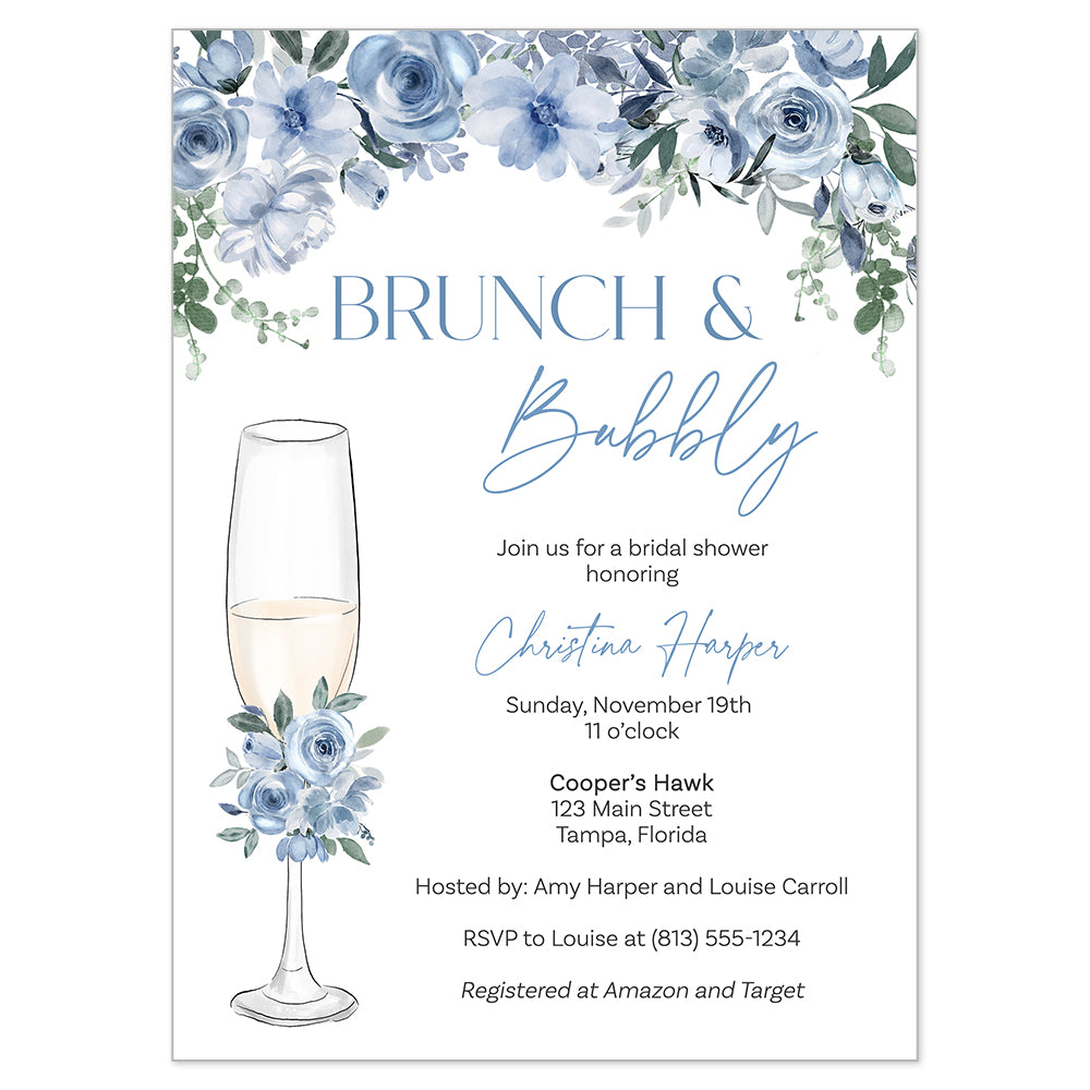 Brunch & Bubbly Blue Bridal Shower Invitation