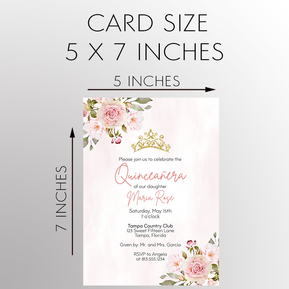 Invite guests to your Quincenaera with these beautiful invitation featuring pink blooms.
