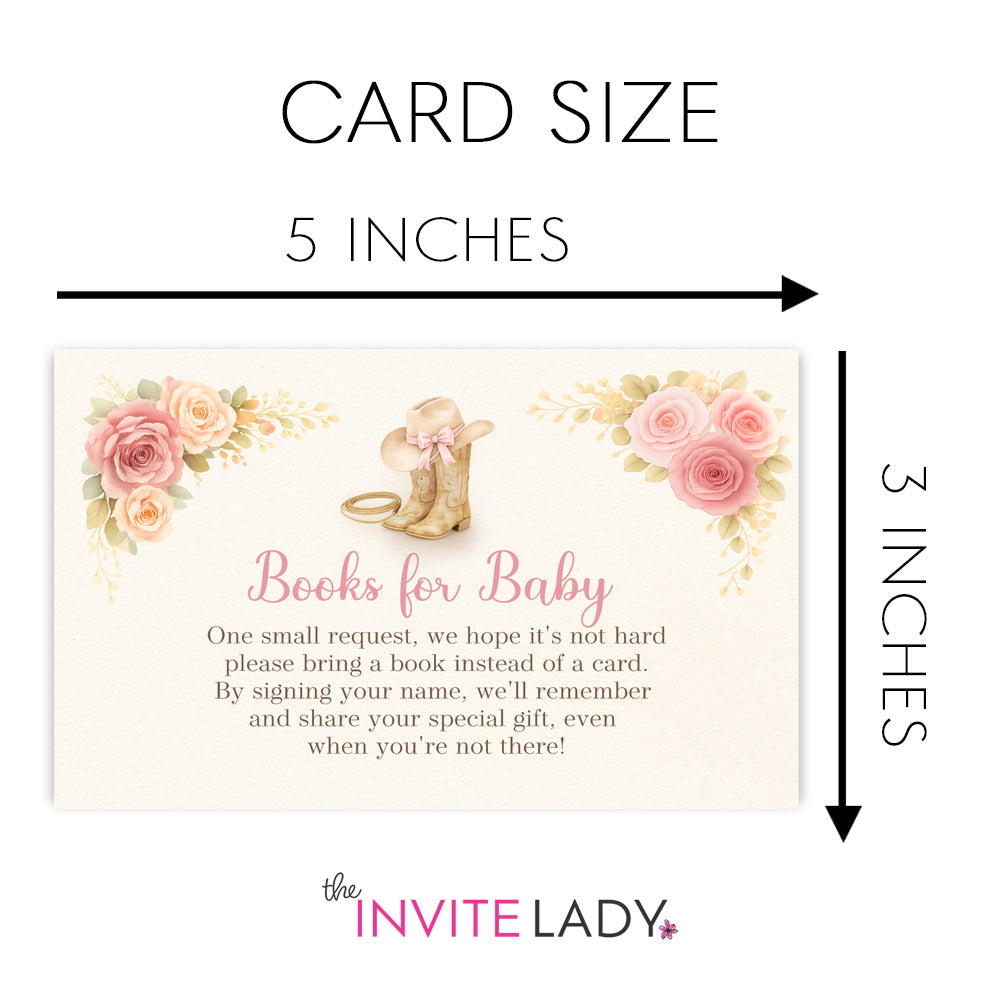 Encourage guests to bring a book for baby to your shower with these adorable cowgirl themed cards.
