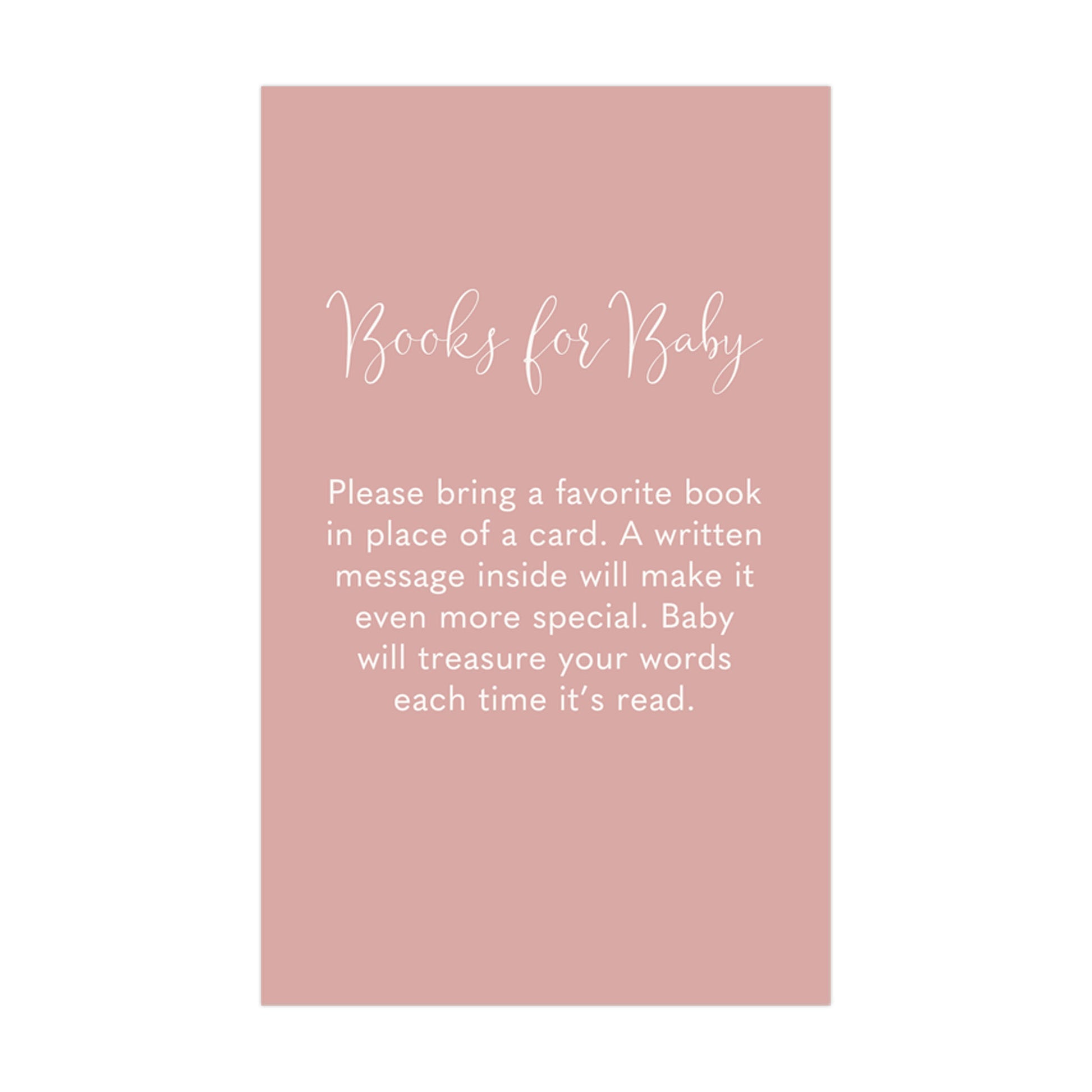 Encourage guests to bring books to your baby shower with this modern pink books for baby insert