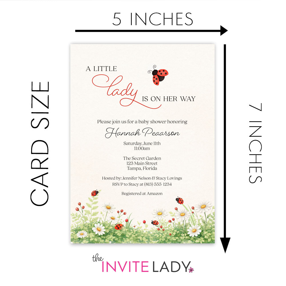 Invite guests to your baby shower with this adorable invitation featuring a little ladybug.