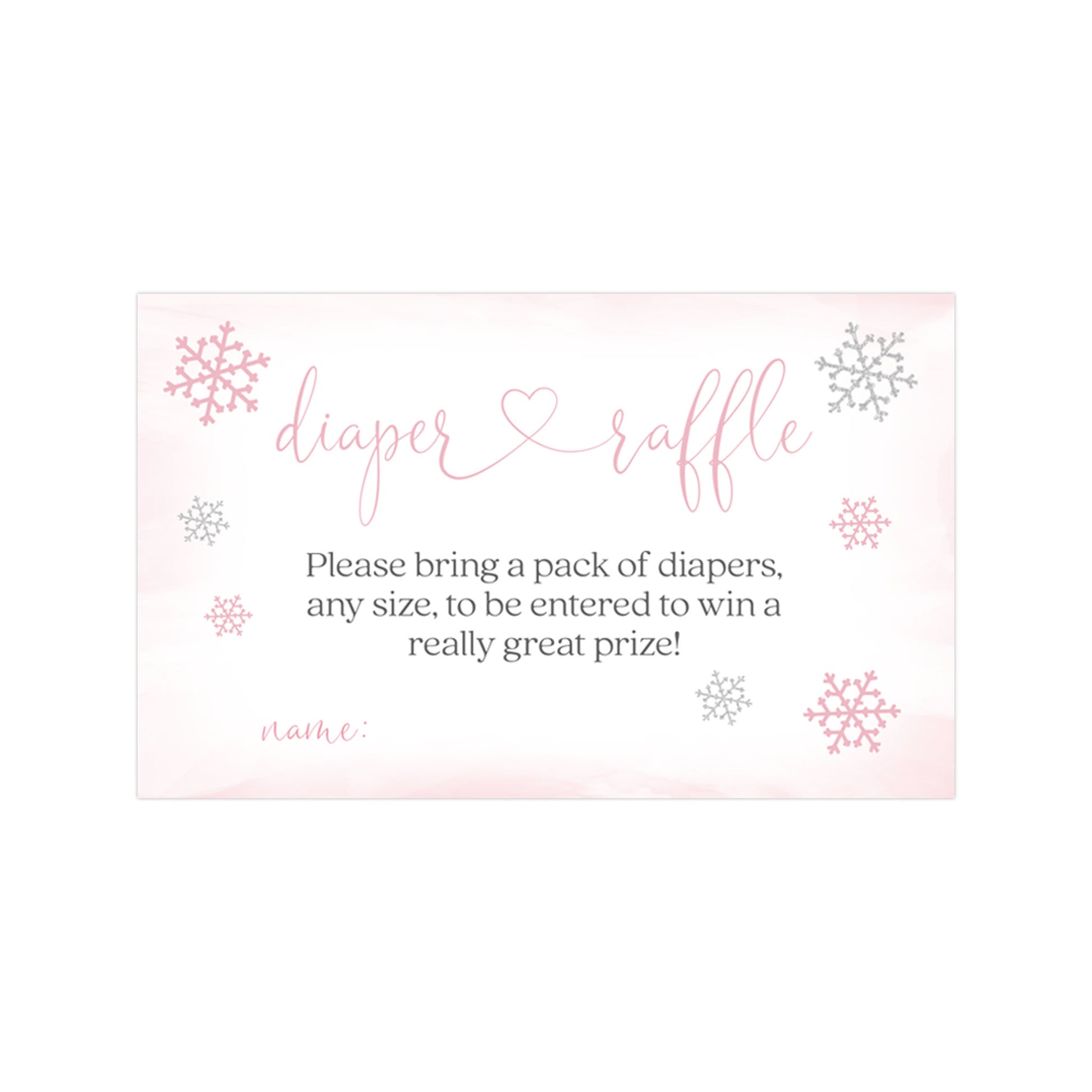 Encourage guests to take part in an awesome raffle when they bring diapers to your baby shower with this adorable raffle ticket featuring snowflakes!