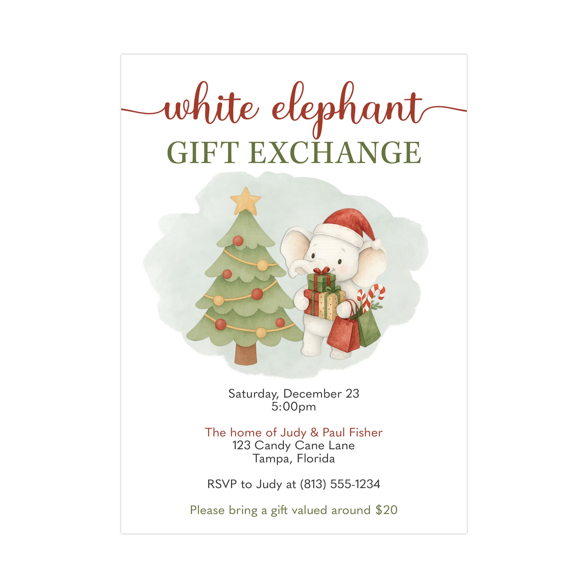 White Elephant Christmas Party Invitations | Holiday Gift Exchange Invite