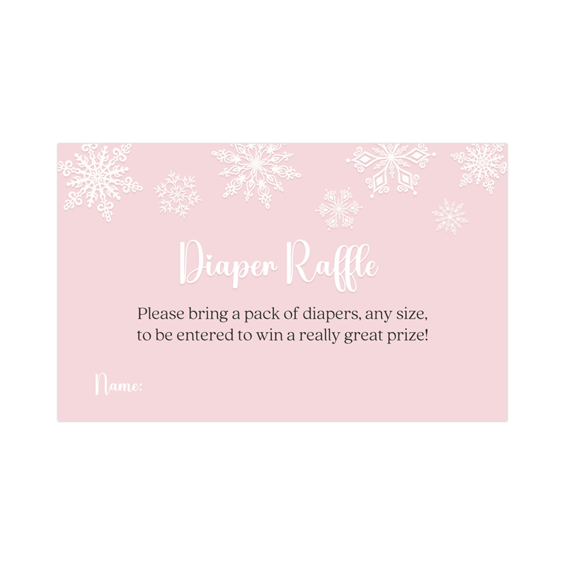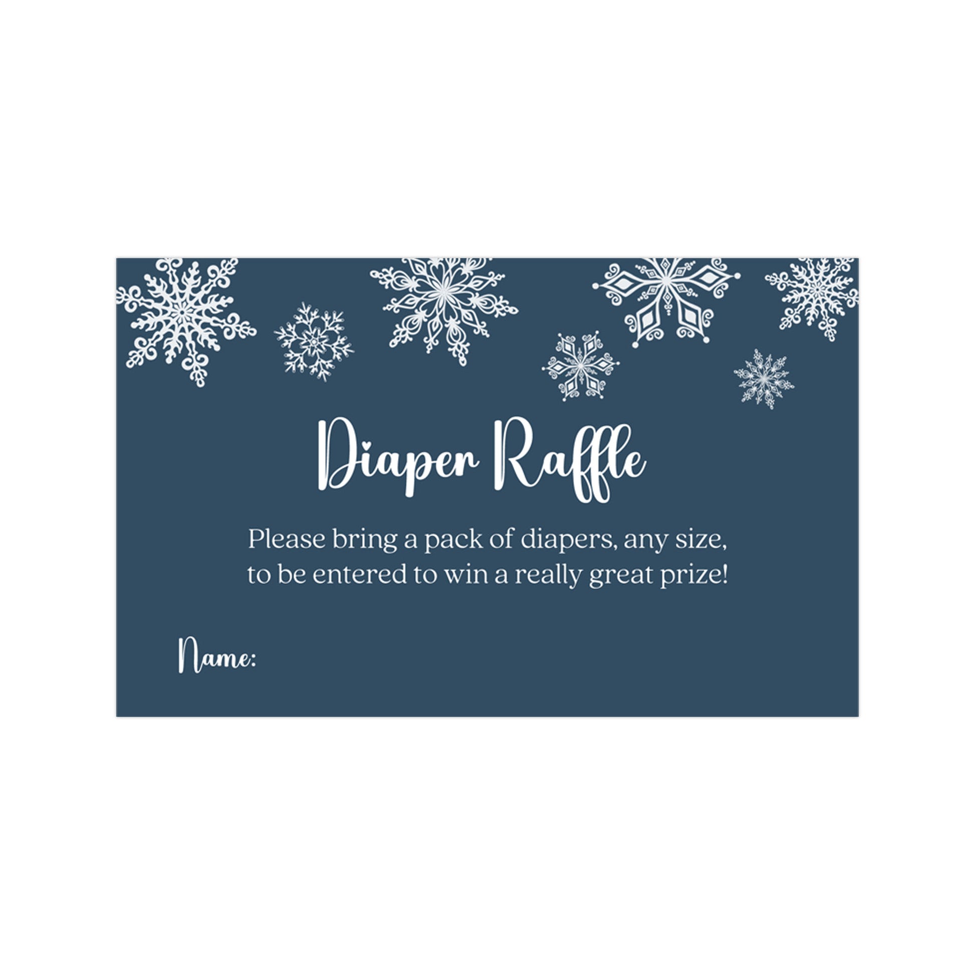 Encourage guests to bring diapers to your baby shower with this winter wonderland diaper raffle ticket.